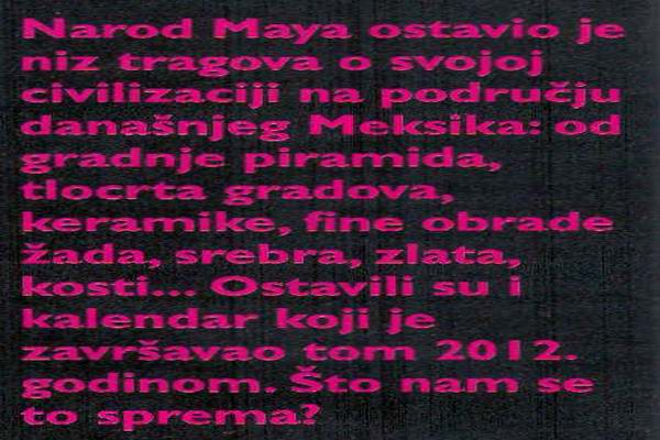 2012. godina je kraj njihovog kalendara i zapravo predstavlja kraj jednog ciklusa koji se zatim ponavija, te možda i iz tog razloga nisu videli potrebu da produžuju pisanje kalendara koji se u svojoj prirodi počinje odvijati isp0četka. Ali, zanimljiva je činjenica da su Maye prvo odredile konačan kraj kalendara, dakle 21.12.2012., ili po Dugom brojanju: 13.0.0.0.0, te su od tog datuma izračunali unazad datum koji je predstavljao početak sveta, zemaljskog postojanja. No, nisu Maye jedine koje ovu godinu poistovecuju s odredenim završetkom.