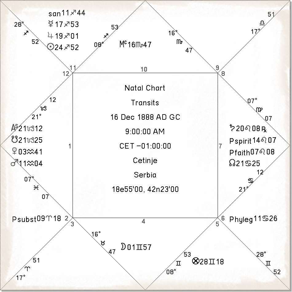 16.12.1888. godine u 09h 00m CET na Cetinju, pokazuje da je njegova smrt, 1934.